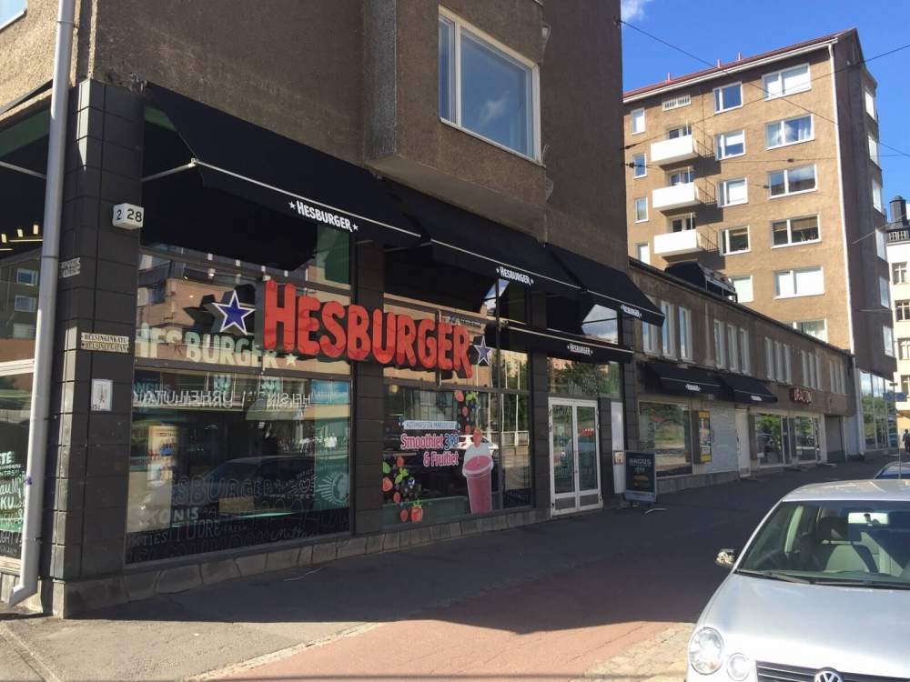 Saneerattu valomainos ja ilmeenmuutosta markiisilla, Hesburger, Saneerasimme Hesburgerin vanhan slim-mallisen valomainoksen uuteen led tekniikkaan ja puhdistimme kirjaimet uudenveroisiksi. Lisäksi saneerasimme kuluneet banderollit ja toimme ne ulkonäöltään nykyaikaan osana kokonaisilmettä.
